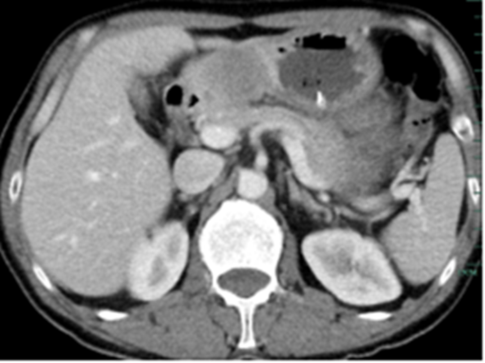 周先生立即到當(dāng)?shù)蒯t(yī)院就診,經(jīng)胃鏡檢查,提示胃竇部有一個巨大的占位性病變,并合并有幽門梗阻,胃鏡活檢病理提示胃竇腺癌。