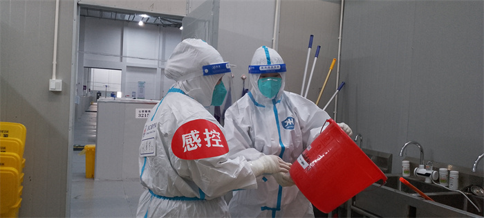自從進入方艙,張翠琴每天對艙內(nèi)區(qū)域進行院感督導、落實手衛(wèi)生、進行環(huán)境清潔消毒、監(jiān)督醫(yī)療垃圾處置、檢查搶救儀器和急救藥品……她仔細查看方艙醫(yī)院的院感風險點,最大限度地防止院感事件的發(fā)生?!吧瞎芴?、下管地,中間管空氣”張翠琴說,這是對院感人工作的比喻,她反復強調(diào),“奧密克戎病毒來勢兇險,容不得一絲馬虎。”“地表要濕拖,避免氣溶膠感染?!?