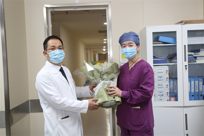 “節(jié)日快樂(lè)!辛苦了!”每到一處,院領(lǐng)導(dǎo)為護(hù)士們送上精心準(zhǔn)備的禮物,并對(duì)她們?nèi)σ愿白龊门R床護(hù)理工作表示感謝。