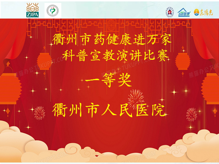 經(jīng)過激烈的角逐,來自衢州市人民醫(yī)院的青年藥師許璐搖憑借極具特色的演講課件、別具一格的演講風格拔得頭籌,榮獲一等獎,屆時,許璐搖將代表衢州市出征全省決賽。
