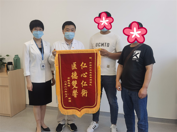 “衢州市人民醫(yī)院值得信任,是老百姓值得托付的好醫(yī)院?!背鲈寒?dāng)天,靳女士和家屬向袁磊博士團隊上送上錦旗和感謝信,“袁磊博士團隊把困難和風(fēng)險留給自己,把希望留給患者,這份恩情,一生銘記。”