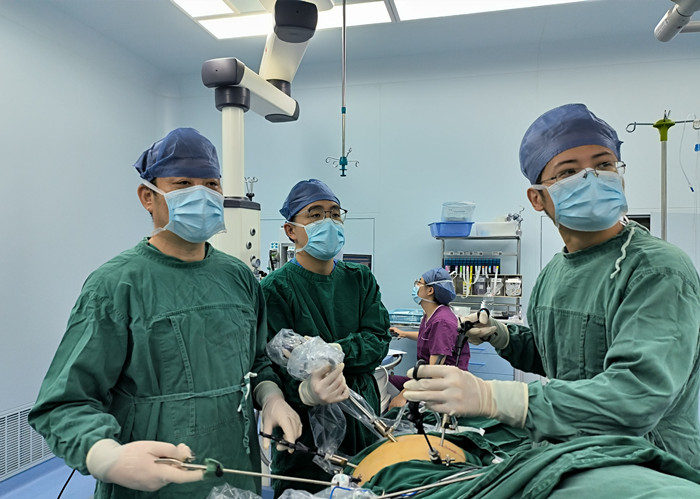 2005年10月,林水泉通過(guò)公開招聘從龍游縣中醫(yī)院調(diào)至我院肝膽外科,剛從上海東方肝膽外科醫(yī)院進(jìn)修回來(lái)的他,有了更好的平臺(tái)。和肝膽外科同事一起開展肝三葉切除、中肝葉切除、肝門部膽管癌根治術(shù)、膽管狹窄修復(fù)、胰十二指腸切除術(shù)等高難度手術(shù),開辟了肝膽外科的一片天地。時(shí)過(guò)境遷,腹腔鏡微創(chuàng)手術(shù)逐漸興起,在醫(yī)院的安排下,林水泉開始主攻胃腸腫瘤微創(chuàng)手術(shù),短短幾年時(shí)間,他就實(shí)現(xiàn)了腹腔鏡微創(chuàng)胃腸癌根治手術(shù)從無(wú)到有、從有到強(qiáng)的理想,打贏了這場(chǎng)與時(shí)俱進(jìn)的攻堅(jiān)戰(zhàn)。