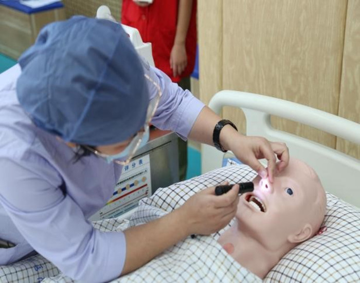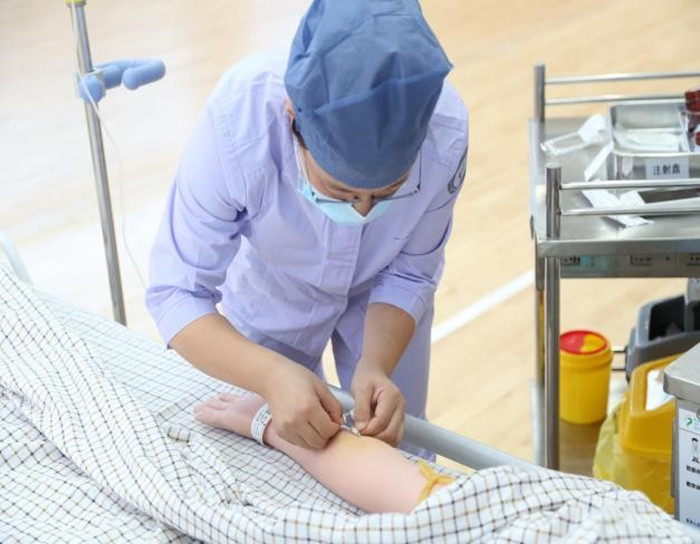 比賽過程中,參賽選手沉著冷靜、有條不紊,動作規(guī)范、操作嫻熟,從搶救意識、精神面貌、人文護(hù)理等方面展現(xiàn)了護(hù)理人員良好的精神風(fēng)貌。