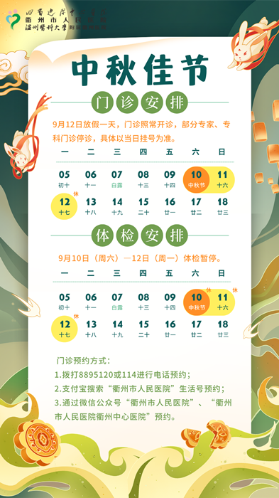 【通知】衢州市人民醫(yī)院2022年中秋節(jié)放假安排