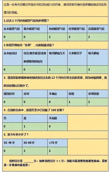 如果您總分大于5分,就建議您來院進(jìn)一步檢查肺功能了。