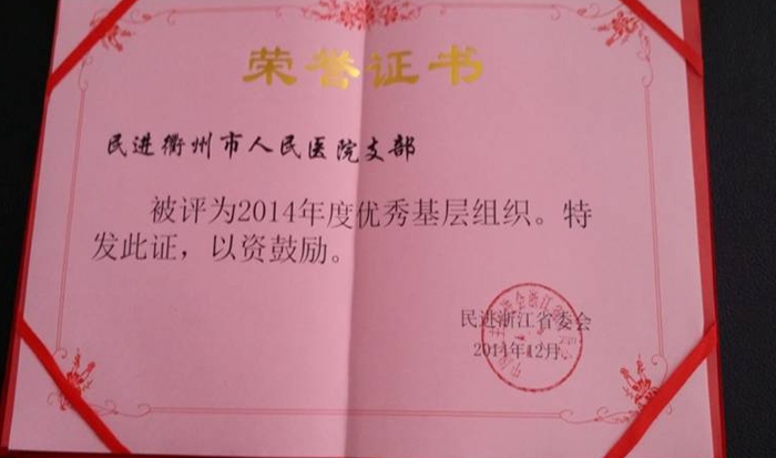 民進衢州市人民醫(yī)院支部被評為2014年民進省委會、市委會“優(yōu)秀基層組織”