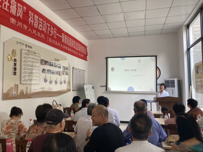 為樹立良好的健康觀念,指導(dǎo)居民認(rèn)識(shí)慢病、管理慢病,7月22日下午,由我院藥學(xué)部主辦的“關(guān)注痛風(fēng)”科普活動(dòng),在新新街道彩虹社區(qū)會(huì)議室舉行。