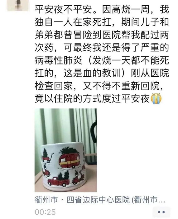 “高燒一周,我獨自一人在家死扛…..竟以住院的方式度過平安夜?!比涨埃鹿诓《靖腥净颊邉⑴浚ɑ┰谂笥讶锔锌?,今年的平安夜是“燙”著過的。