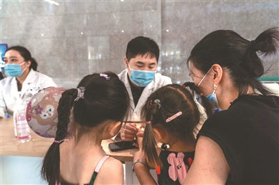 6月1日早上9點(diǎn),四省邊際中心醫(yī)院(衢州市人民醫(yī)院)門診大廳熱鬧非凡,兒內(nèi)科、眼科、口腔科、皮膚科、針灸理療科等9個(gè)科室一字排開,開展聯(lián)合義診活動(dòng)。
