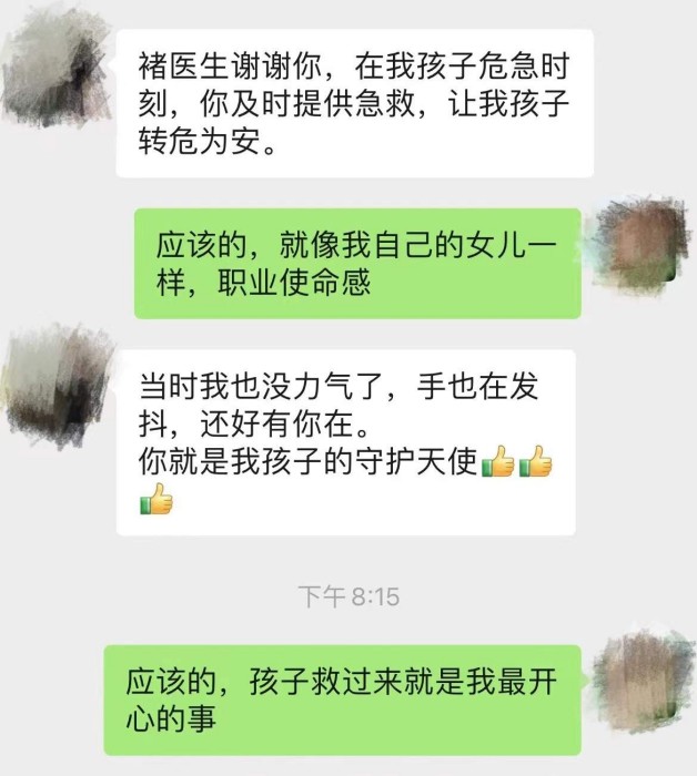 “褚醫(yī)生謝謝你,在我孩子危急時刻,你及時提供急救,讓我孩子轉(zhuǎn)危為安?!崩钆扛屑げ灰?。