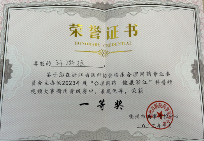 我院青年藥師許璐搖獲全市科普短視頻大賽一等獎(jiǎng)