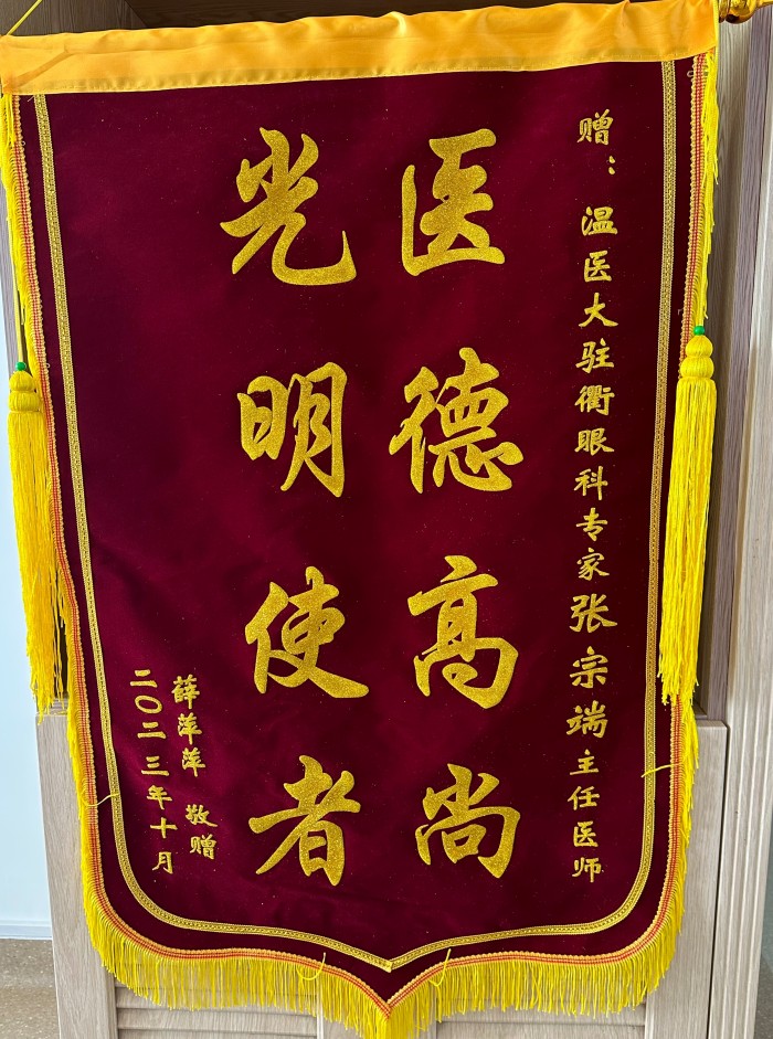 近日,患者薛女士將一面錦旗送到我院眼科中心主任張宗端手中。
