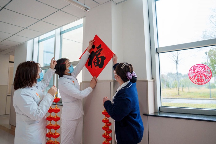 龍年春節(jié)將至,大街小巷到處洋溢著新春的氣息?!皩ξ覀儊碚f,最美好的年味,莫過于患者的健康?!备∈簠^(qū)負責(zé)人介紹說,把病區(qū)布置得年味濃郁,患者心情也會好起來,也體現(xiàn)了新春佳節(jié)的溫馨與暖意,共同祈福來年身體健康、生活安康。