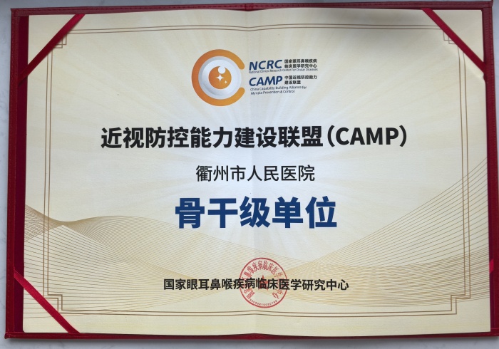 全市首家!我院眼科獲中國近視防控能力建設(shè)聯(lián)盟(CAMP)骨干級(jí)單位