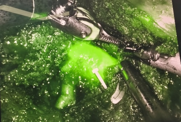術(shù)中,醫(yī)護團隊利用吲哚菁綠熒光顯影導(dǎo)航技術(shù),準(zhǔn)確定位肝臟切除范圍。