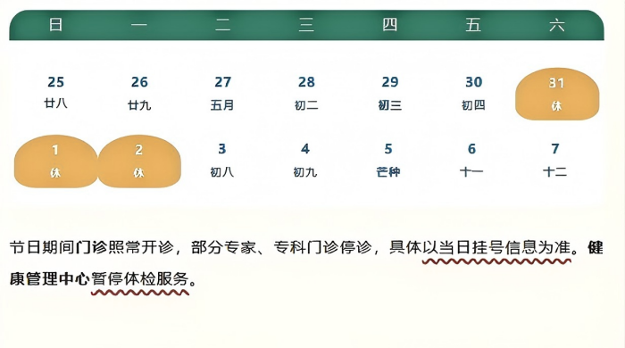 2025年端午節(jié)門診安排 文章來(lái)源:門診部 作者: 點(diǎn)擊數(shù):1780 更新時(shí)間:2025-05-29 端午節(jié)假期安排如下: 上一篇: 【雙節(jié)獻(xiàn)禮】母親節(jié)邂逅護(hù)士節(jié),送給她愛(ài)的二次方 下一篇: 520文末有福利~~致敬每一位“喂”愛(ài)堅(jiān)守的超人媽媽