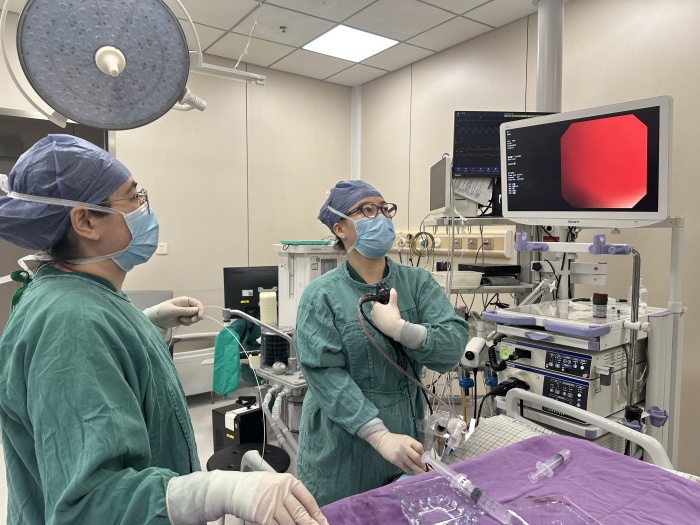 入住呼吸重癥監(jiān)護室(RICU)后,主管醫(yī)師方劍對吳爺爺的病情進行充分評估,并申請了科內會診,科室討論決策,由呼吸與危重癥醫(yī)學科主任金旭如領銜的呼吸介入團隊為吳爺爺施行支氣管鏡下介入治療。