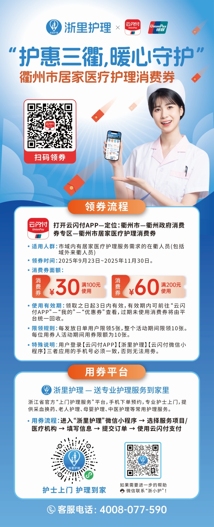 9月23日-11月30日,衢州市居家醫(yī)療護理可以領(lǐng)消費券啦~有需求的市民朋友千萬不要錯過!
