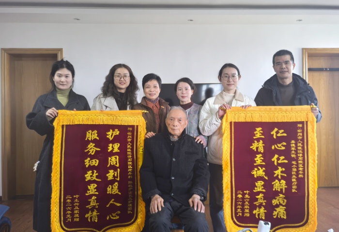 今年93歲的葉爺爺,此前因心腦血管疾病在浮石老年醫(yī)學(xué)科住院,伴有肢體活動、吞咽障礙,情緒低落。老年醫(yī)學(xué)科醫(yī)護(hù)團(tuán)隊(duì)為葉爺爺定制個(gè)體化治療方案,護(hù)理中悉心指導(dǎo)家屬協(xié)助康復(fù)。經(jīng)精心照護(hù),葉爺爺病情穩(wěn)定出院,醫(yī)護(hù)團(tuán)隊(duì)特意叮囑注意事項(xiàng)并約定上門隨訪。
