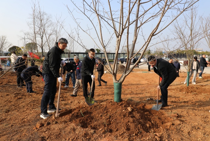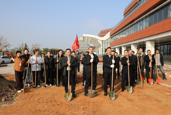 黨委書記陳成水,黨委副書記、院長程科云等院領(lǐng)導(dǎo)班子成員,與黨支部代表、職工代表共同植樹。