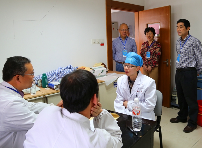 ??? 本次臨床技能考核由衢州市衛(wèi)生局統(tǒng)一組織,我院承擔(dān)具體考核任務(wù),來自全市各家醫(yī)院的68名醫(yī)生參加了考核。市衛(wèi)生局黨委書記、局長陳根成,副局長周衛(wèi)華一行親臨考場巡視。