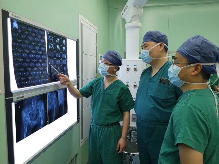 他潛心鉆研、精進業(yè)務(wù)。為了緊跟關(guān)節(jié)外科領(lǐng)域的快速發(fā)展,他學(xué)習(xí)最新科研成果,不斷更新診療理念。每次應(yīng)對急危重癥,醫(yī)生面對復(fù)雜病情心存疑慮,“領(lǐng)頭羊”王巍都能臨危不亂,給大家以定心丸,反復(fù)推敲、仔細(xì)研究,制定最佳手術(shù)方案,以最優(yōu)的效果診治患者。在不斷積累診治經(jīng)驗,一次次提升突破技術(shù)水平后,他曾創(chuàng)下短短7個小時內(nèi)完成5臺關(guān)節(jié)置換手術(shù)的高效記錄,為廣大患者解除了病痛的困擾。