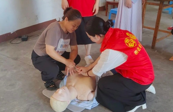 活動首站設(shè)在下方村黨群服務(wù)中心。針對農(nóng)村地區(qū)急救知識普及不足的情況,黨支部黨員骨干以“理論講解+實操演示”的形式,重點講解了心肺復(fù)蘇急救技能。黨員們現(xiàn)場使用模擬人示范操作步驟,手把手指導(dǎo)村民練習(xí)心肺復(fù)蘇,糾正不規(guī)范操作,確保村民能初步掌握“救命技能”。同時,圍繞高血壓、糖尿病等農(nóng)村高發(fā)慢性病,黨員們通過發(fā)放健康手冊、一對一答疑等方式,講解疾病預(yù)防、 用藥規(guī)范及日常護(hù)理要點,幫助村民建立科學(xué)的健康管理意識。